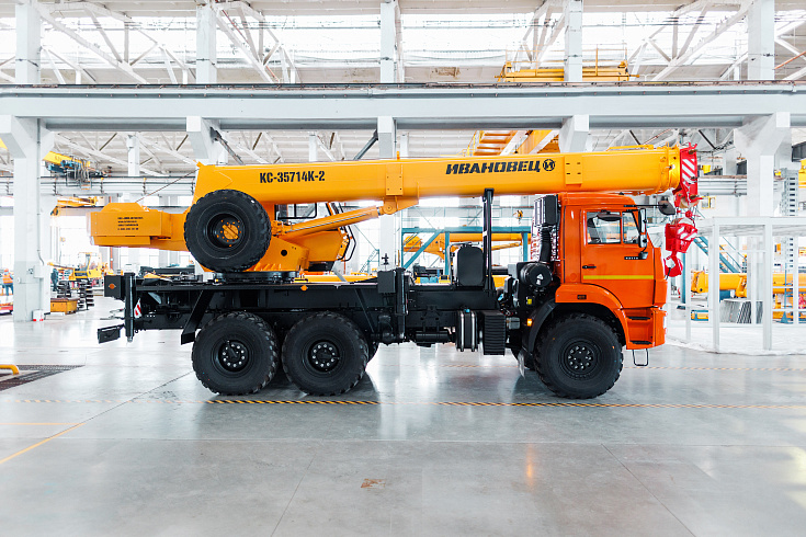 Автомобильный кран КС-35714К-2 предназначен для производства строительно-монтажных и погрузочно-разгрузочных работ с обычными грузами.- Базовое шасси - КАМАЗ-43118 экологического класса 5