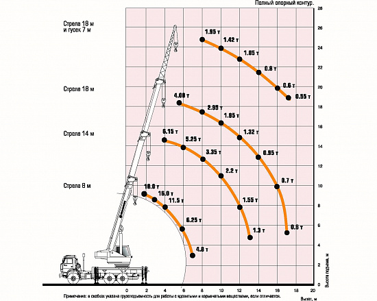 - Стрела - телескопическая трёхсекционная. Телескопирование стрелы - гидроцилиндром и системой полиспастов. С целью увеличения длины стрелы и подстрелового пространства возможна дополнительная комплектация гуськом длиной 7,0 м.