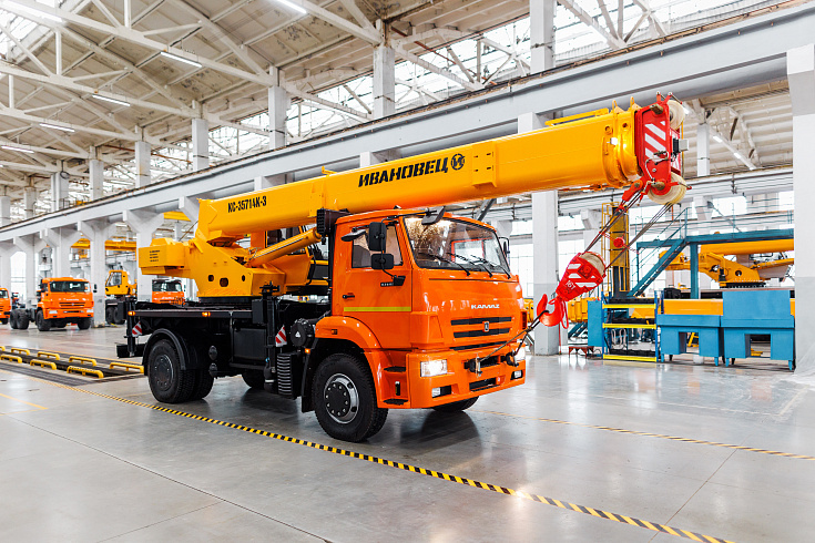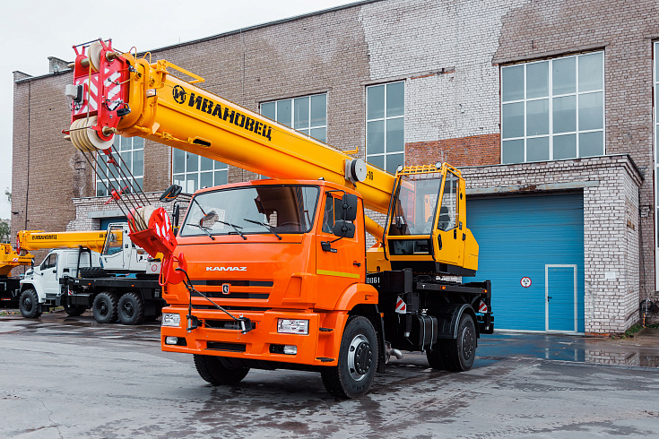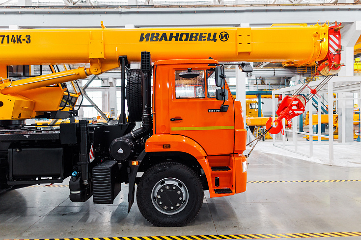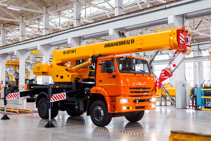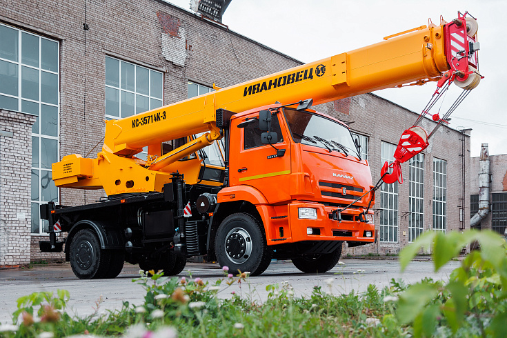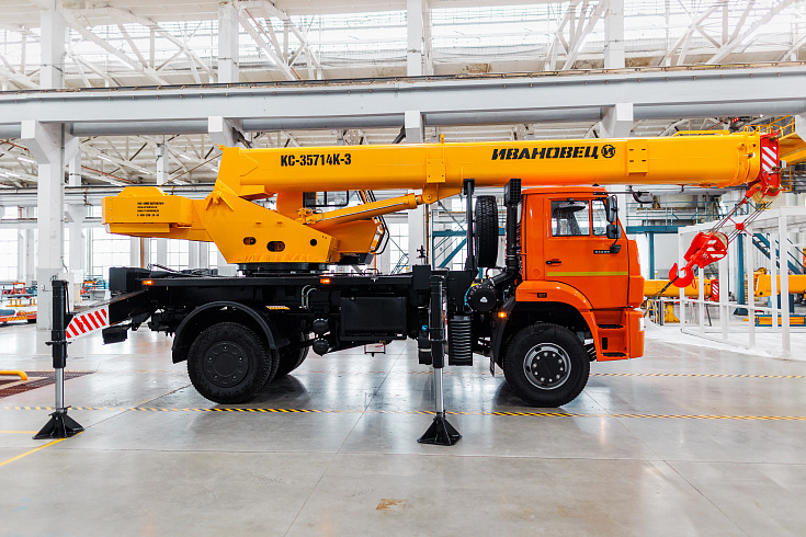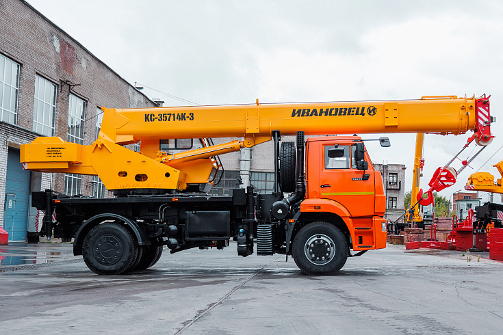Автомобильный кран КС-35714К-3 предназначен для производства строительно-монтажных и погрузочно-разгрузочных работ с обычными грузами.- Базовое шасси - КАМАЗ-53605 экологического класса 5