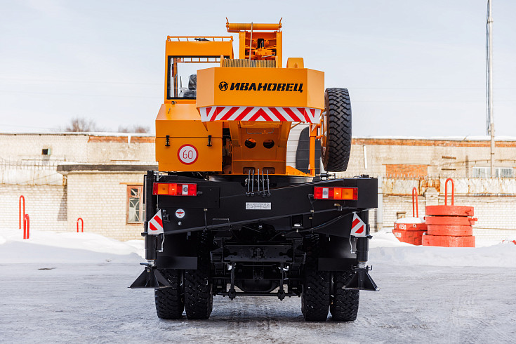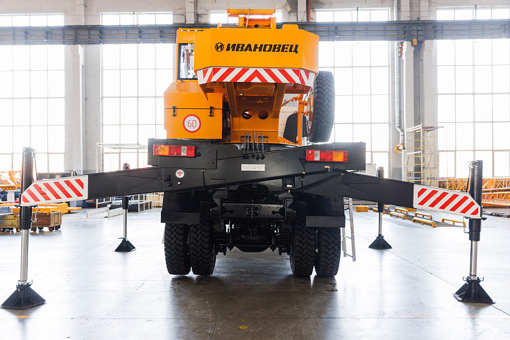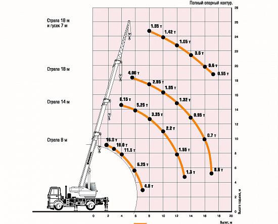 - Стрела - телескопическая трёхсекционная. Телескопирование стрелы - гидроцилиндром и системой полиспастов. С целью увеличения длины стрелы и подстрелового пространства возможна дополнительная комплектация гуськом длиной 7,0 м.