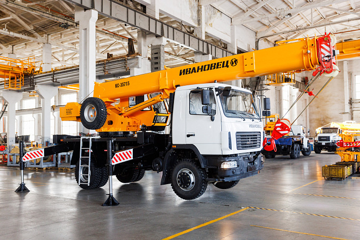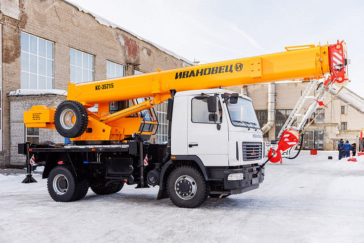 Автомобильный кран КС-35715 предназначен для производства строительно-монтажных и погрузочно-разгрузочных работ с обычными грузами.