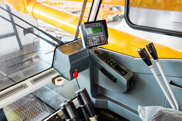 - Ограничение грузоподъёмности и фиксация параметров работы крана - при помощи микропроцессорного ограничителя грузоподъёмности с цифровой индикацией информации и встроенным регистратором параметров
