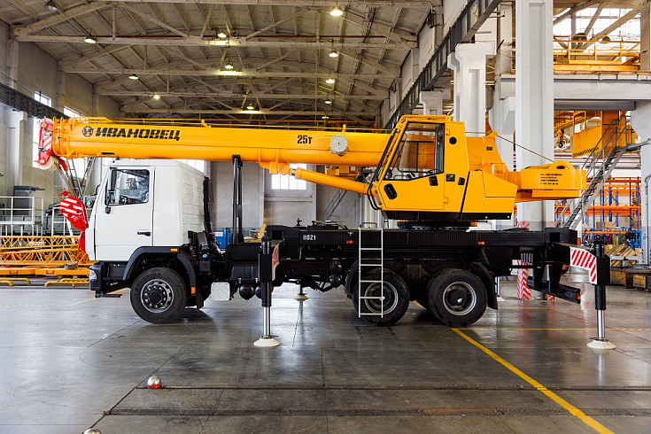 - Максимальная грузоподъёмность при работе с обычными грузами - 25 т