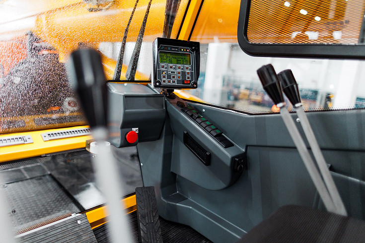 Значительные изменения внесены в серию кранов КС-25М. Эти изменения сделаны для обеспечения комфортной и эффективной работы при выполнении задач по интенсивной обработке грузов с высокими требованиями к грузоподъемности. Помимо комфортабельной кабины с новыми для этой серии органами управления (боковые рычаги или ЭПСУ), автокраны серии КС-25М получили увеличенный на 17% опорный контур 5,4х6,0 м, мощные аутригеры и стрелу из шведской стали Strenx 700 длиной 22 или 24 м. Все эти технические решения обеспечивают увеличенный до 85 тм максимальный грузовой момент и дополнительную грузоподъемность от 30 до 65% на средних и дальних вылетах, по сравнению с традиционной серией КС-25. Новая гидравлическая система с насосом объемом 112 «кубиков» и улучшенными показателями охлаждения за счет увеличения объема гидробака до 295 л. обеспечивает повышение скоростей выполнения крановых операций. Применённые технические решения в комплексе увеличивают общую эффективность выполнения цикличных работ на 25% по сравнению с серией КС-25В, а, значит, наши Заказчики получают высокоэффективный автокран для решения напряженных задач по обработке грузов в логистической отрасли и при выполнении монтажных работ.