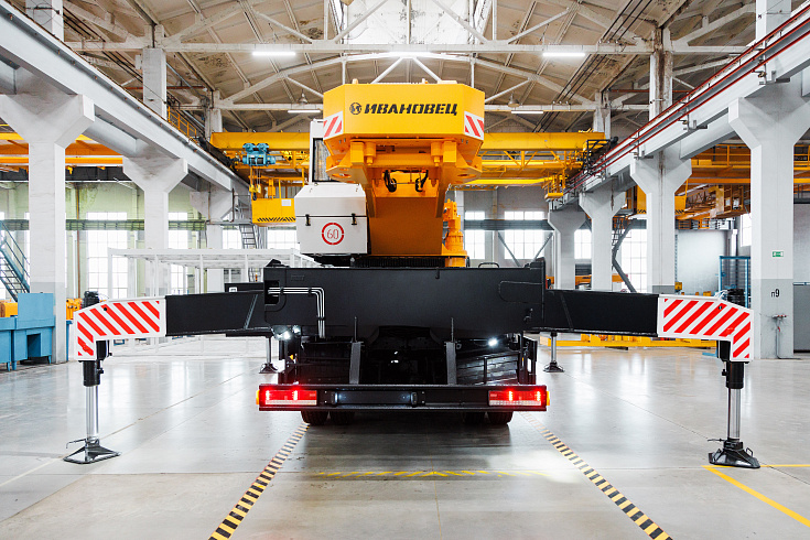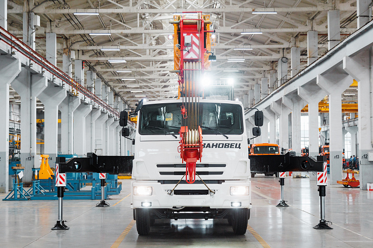 Конструкция телескопической стрелы автокрана КС-55717К-1 изготовлена на полностью автоматической производственной линии по технологии настоящего овоида. Полукороб стрелы формируется всего 2 гибами с образованием полноценных радиусных участков, за счет чего стрела обладает большим сопротивлением к потере местной устойчивости, обеспечивает высокую надежность и лучшие условия работы сопрягаемых скользунов.