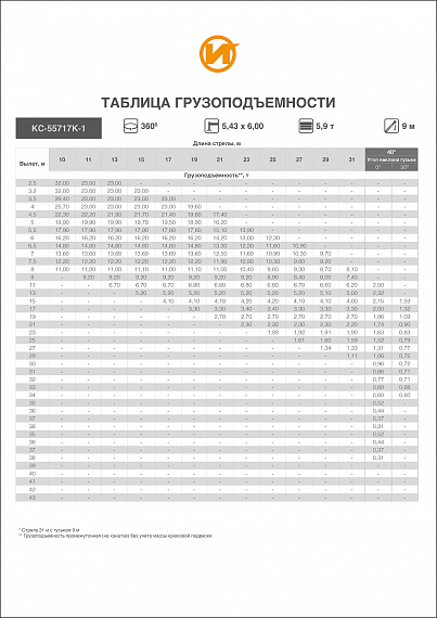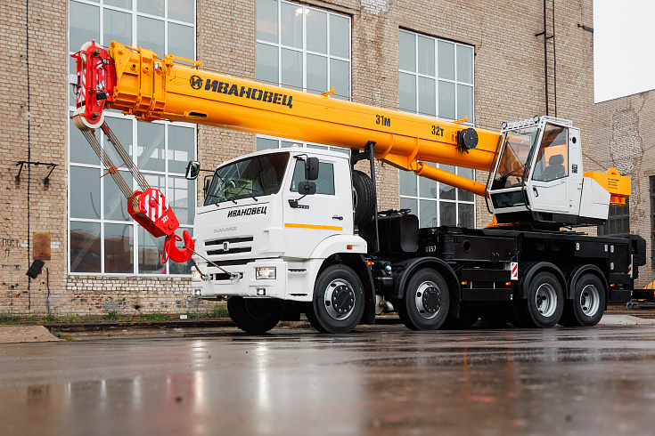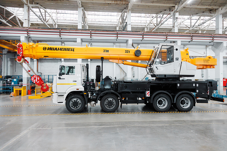 КАМАЗ-6540 одно из самых популярных в России четырехосных шасси. Его использование в составе автокрана КС-55717К-1 позволяет выполнять требования по допустимым нагрузкам на оси при передвижении по дорогам общего пользования. Серия кранов АК-32 со стрелой 31 м обладает «К-образным» опорным контурами новой системой съемных противовесов. Возможно перевозить противовесы до 3,2 т на неповоротной раме, а также противовес 1,2 т на поворотной раме, оставаясь в рамках требований к осевым нагрузкам. Класс шасси - шоссейное.