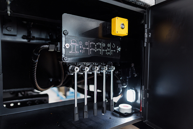 На кране демонстрируется новая система обеспечения гибкости и комфорта: съемный ящик для инвентаря и такелажа. Кран самостоятельно может монтировать и демонтировать ящик на свой задний борт. Это единственный элемент, который необходимо демонтировать с крана для свободного перемещения по дорогам общего пользования с нагрузкой 10тс.