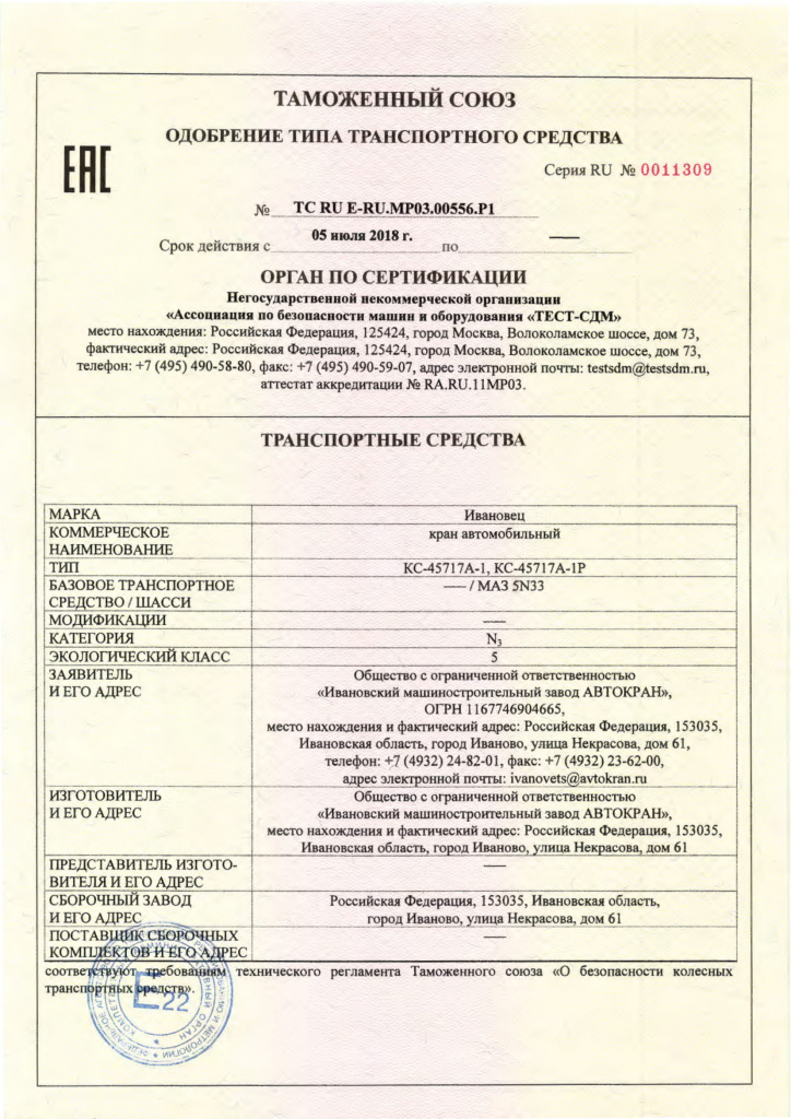 Автомобильный кран КС-45717А-1 предназначен для производства строительно-монтажных и погрузочно-разгрузочных работ с обычными грузами, а также ядовитыми и взрывчатыми веществами на рассредоточенных объектах.