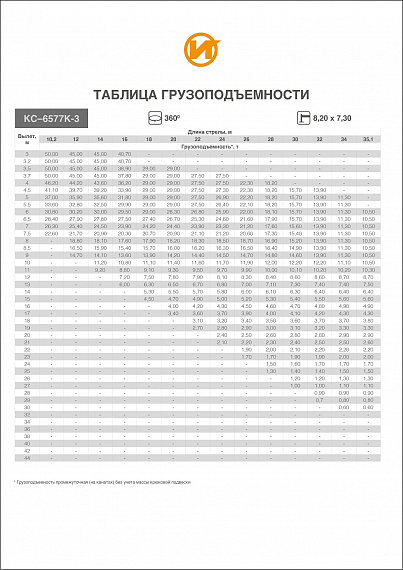 - Грузовой момент 185 тм, наибольший среди российских кранов;