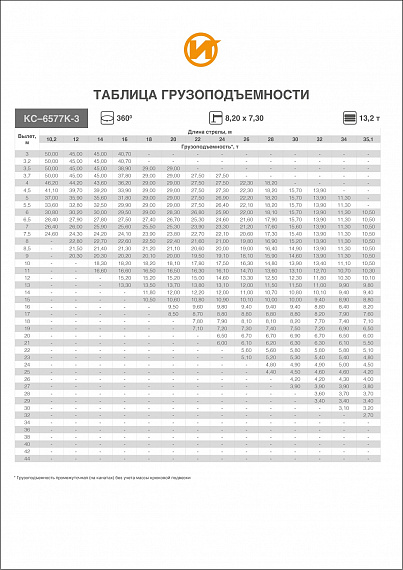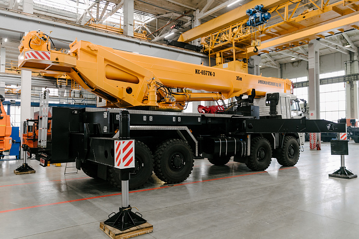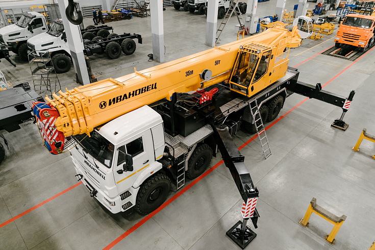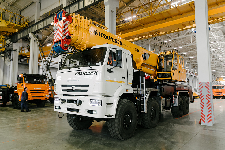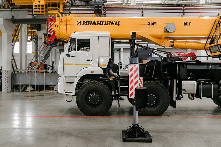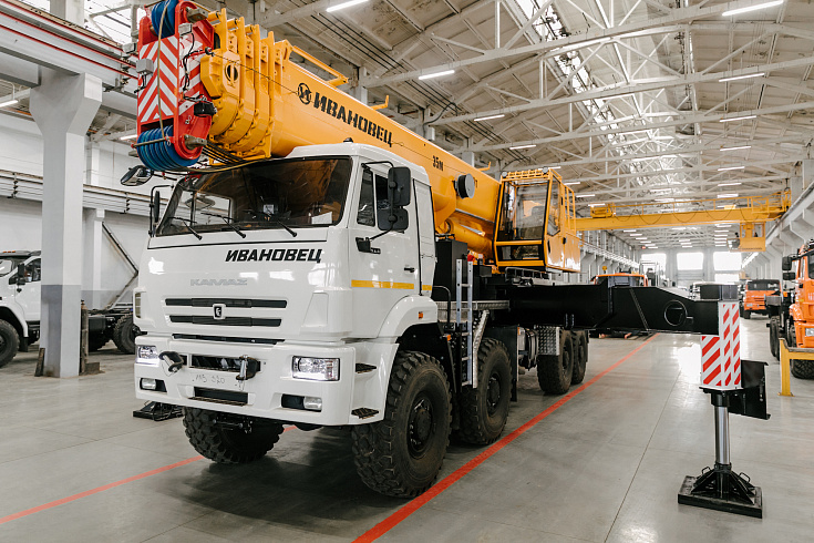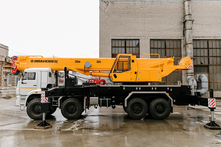 Представляем 50-тонный автокран "ИВАНОВЕЦ" КС-6577К-3Накопленный научно-технический потенциал предприятия и уникальная конструкторская школа позволили создать высокотехнологичную крановую установку с 5-ти секционной телескопической стрелой длиной 35м, позволяющей достигать максимального грузового момента 185тм. За счет разработанного программного комплекса для этого автокрана, скорость выполнения операций адаптируется под текущую грузоподъёмную операцию - обеспечивая высокий уровень безопасности и рабочей эффективности.
